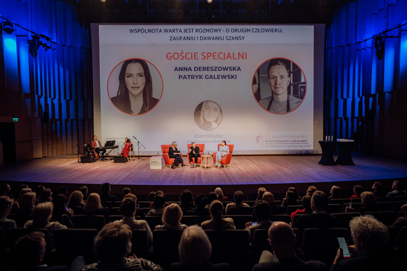 Na szczególną uwagę zasługiwał także udział gości specjalnych, którzy w swoich rozmowach pokazali, jak wiele wspólnota i zaufanie znaczą w codziennym życiu społecznym. Anna Dereszowska i Patryk Galewski w rozmowie „Wspólnota warta jest rozmowy – o drugim człowieku, zaufaniu i dawaniu szansy” podzielili się refleksjami o budowaniu relacji opartych na empatii i wzajemnym wsparciu, opowiadali o swoich motywacjach do angażowania się w działania społeczne, a także o kolejnych planach. Łukasz Orbitowski w rozmowie z Jarosławem Szubrychtem „Literatura może zmieniać życie – nawet za murami więzienia” opowiadał o sile literatury i jej wpływie na drugiego człowieka. Z kolei Joanna Sadzik, Prezeska Stowarzyszenia Wiosna, w rozmowie z Aleksandrą Bielecką zatytułowanej „Od Paczki do wspólnoty. Dlaczego pomaganie buduje nas wszystkich”, mówiła o tym, jak empatia i wspólne działanie potrafią realnie zmieniać rzeczywistość i budować więzi międzyludzkie.