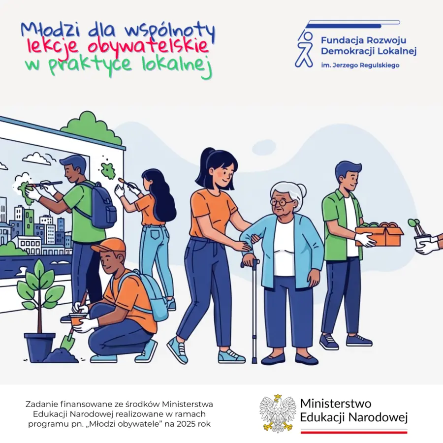 Zapraszamy szkoły ponadpodstawowe z Mazowsza do udziału w projekcie "Młodzi dla wspólnoty – lekcje obywatelskie w praktyce lokalnej", realizowanym w ramach programu Ministra Edukacji "Młodzi Obywatele 2025".