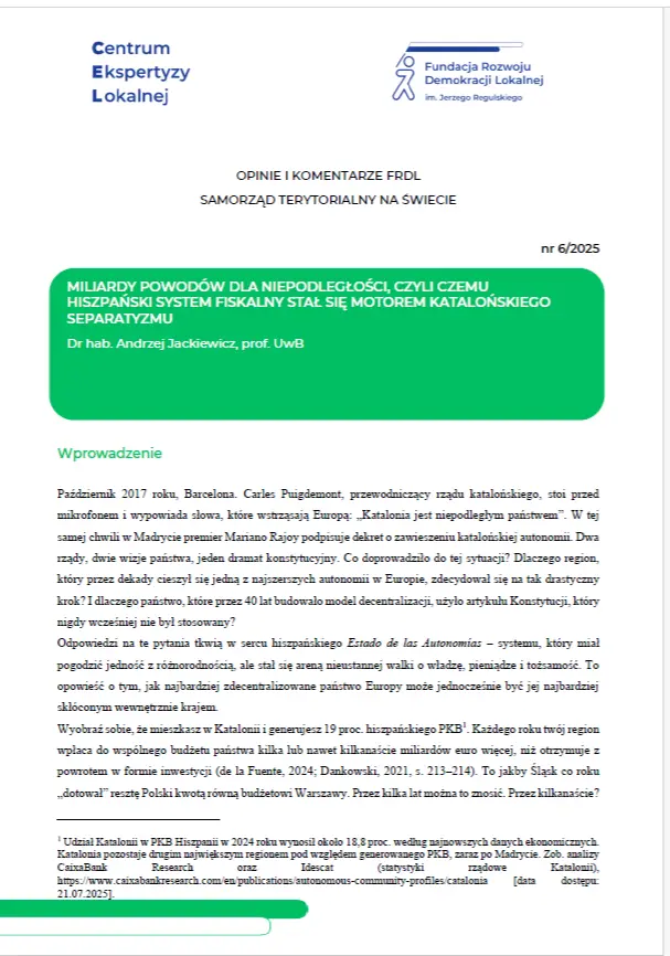 Hiszpański model Estado de las Autonomías, jeden z najbardziej zdecentralizowanych systemów w Europie, przeżywa dziś fundamentalny kryzys. Artykuł analizuje ewolucję hiszpańskiego regionalizmu od pokojowego przejścia do demokracji w 1978 roku aż do kryzysu konstytucyjnego z 2017 roku. Kluczową tezą jest wykazanie, że współczesny separatyzm hiszpański przeszedł transformację od motywacji kulturowo-tożsamościowych do argumentacji wyłącznie ekonomicznej. Badanie koncentruje się na asymetrycznym systemie finansowania, który dzieli Hiszpanię na dwa światy fiskalne. Kraj Basków i Nawarra cieszą się niemal pełną autonomią podatkową (cupo), podczas gdy pozostałe regiony funkcjonują w systemie redystrybucyjnym. Ten dualizm stał się głównym paliwem katalońskiego ruchu niepodległościowego, którego hasło España nos roba ilustruje przejście od romantycznego separatyzmu do fiskalnych kalkulacji. „Konstruktywna niejednoznaczność” Konstytucji z 1978 roku, która początkowo umożliwiła pokojową demokratyzację, przekształciła się w źródło permanentnej niestabilności. Trybunał Konstytucyjny stał się de facto najważniejszym politykiem kraju. Kryzys z 2017 roku ujawnił strukturalne słabości systemu i pokazał, że bez nowego konsensusu politycznego Hiszpania może stać się pierwszym rozwiniętym państwem europejskim, które rozpadnie się z powodu niemożności pogodzenia konkurencyjnych wizji wspólnoty politycznej. Hiszpańskie doświadczenia pokazują, że decentralizacja nie rozwiązuje automatycznie konfliktów terytorialnych, a nawet może je pogłębiać poprzez dostarczenie regionom narzędzi do budowania własnych aspiracji politycznych.